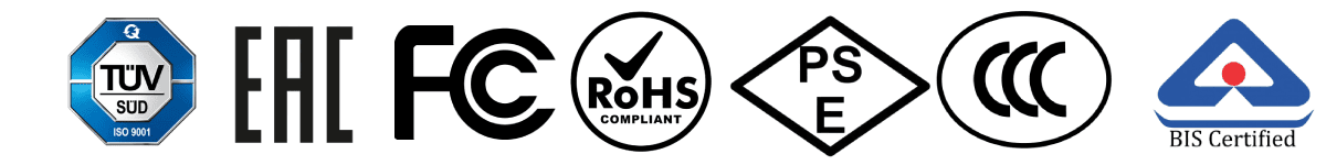AET holds key certifications, including ISO 9001, ISO 14001, ISO 45001, ISO 27001, and High-Tech Product Certification, along with international and domestic credentials like CCC, ROHS, FCC, PSE, EAC, TUV, BIS, and more.
